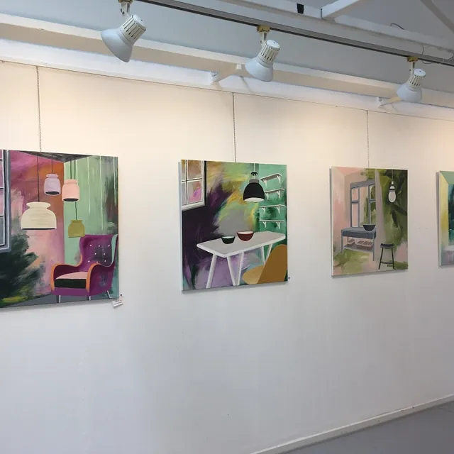 Vi er 8 malere, alle uddannet på Kunstskolen Spektrum, som udstiller i Galleri Kunst 86 i Ryesgade på Østerbro.