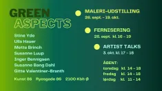 Vi har i Kunstnergruppen ASPEKT sat os for, at lave en grøn udstilling, hvor der kun benyttes grønne farver, en spændende udfordring.
