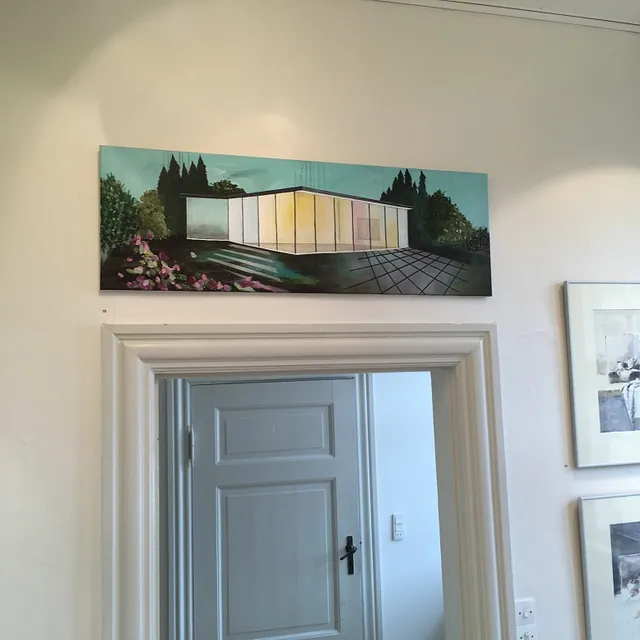 Bor du længere væk, så sender du mig bare lidt forskellige fotos du selv tager, af det rum du synes der kunne være spændende, at have som maleri og så finder vi sammen ud af hvilket der egner sig bedst.Det færdige maleri kan sendes til dig med Post Danmark el.lign.