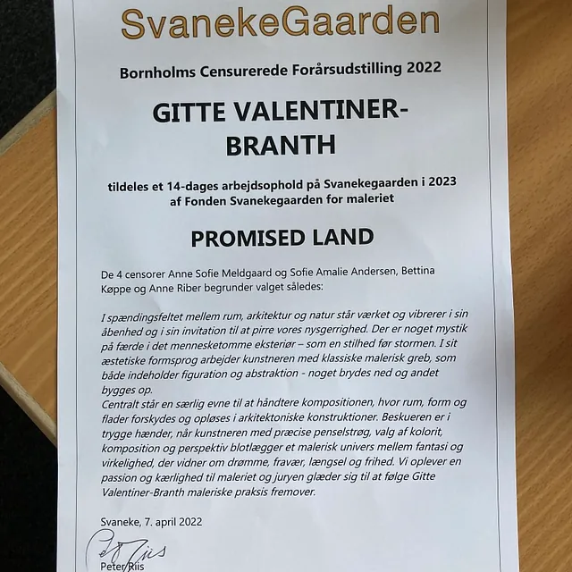 Jeg har vundet et legat på 2 ugers arbejdsophold på Svanekegården i 2023, for mit værk på udstillingen, Promised Land. Det er da bare super fedt!
