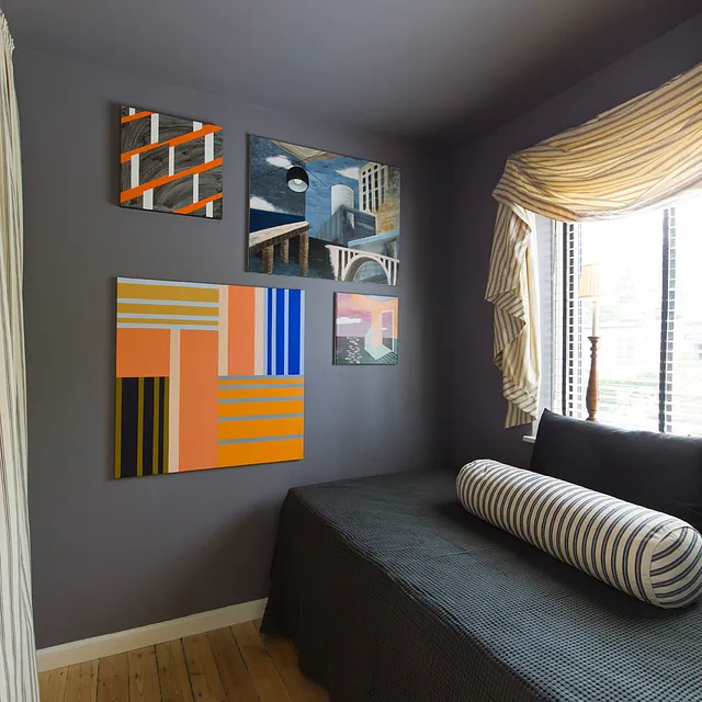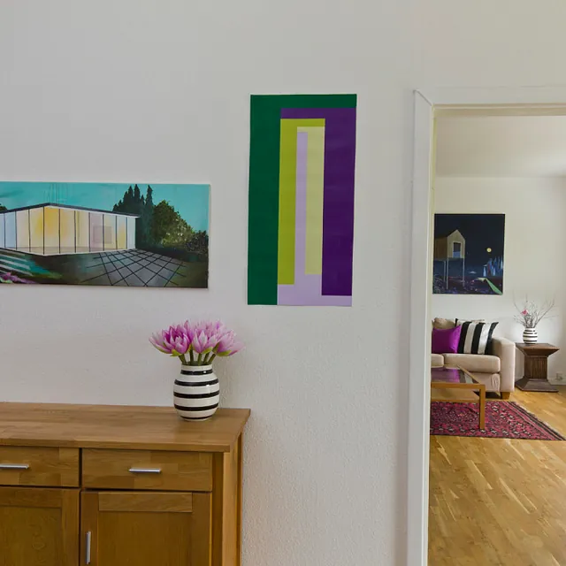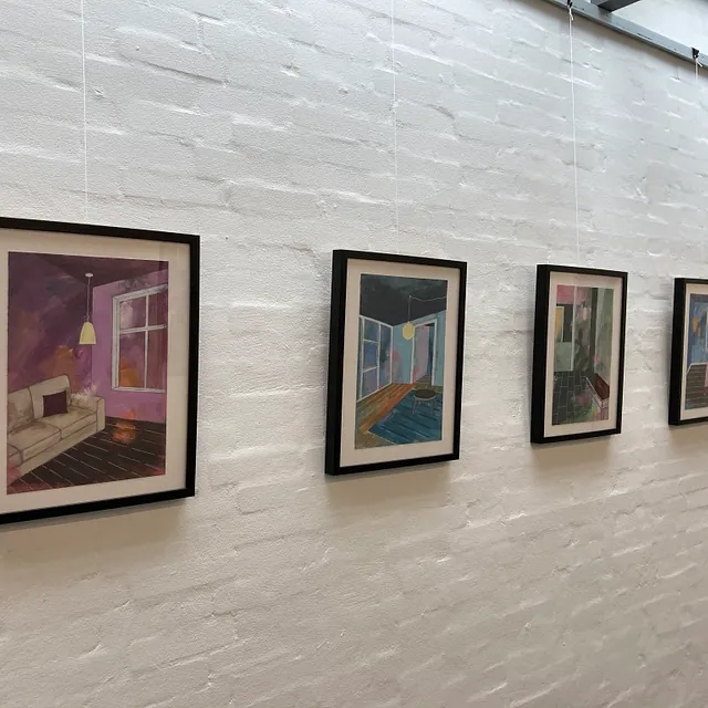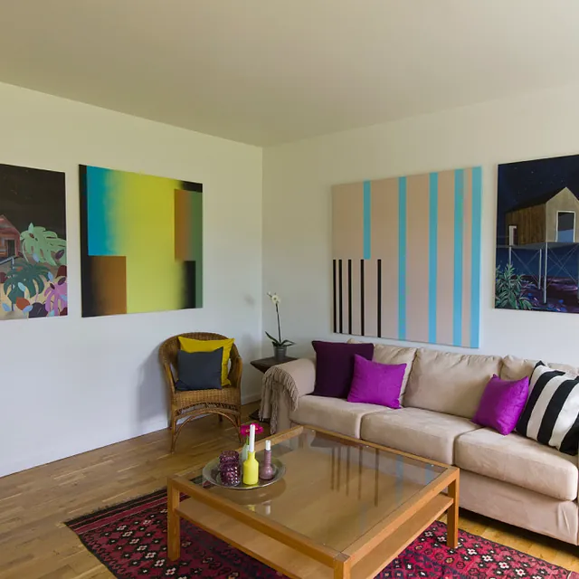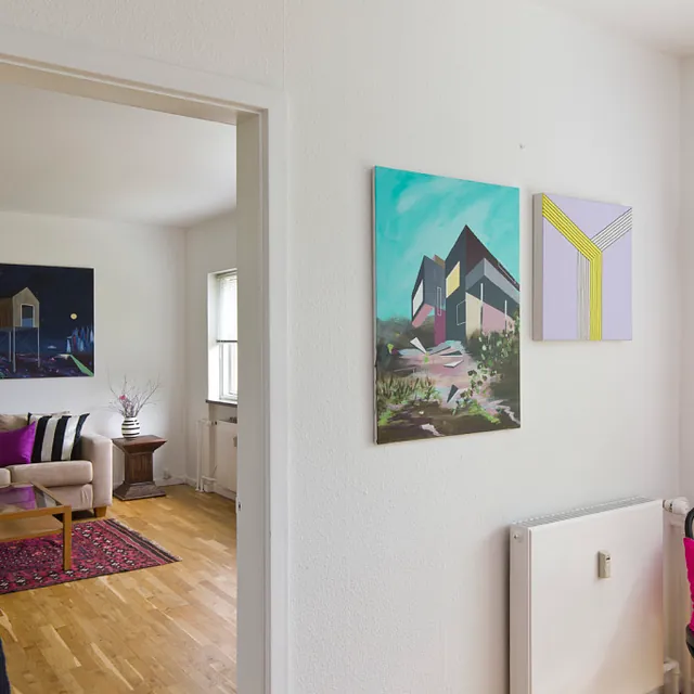 Jeg kommer ud og tager et par fotos af et rum i dit hjem og maler et billed ud fra det.