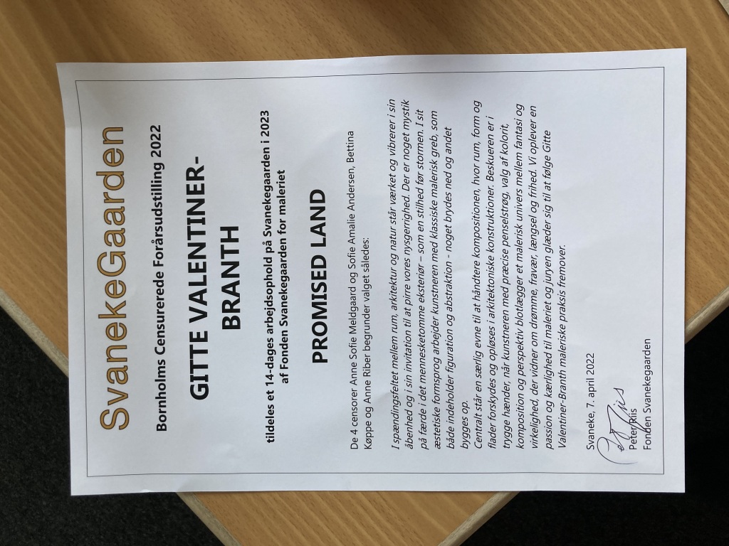 Jeg har vundet et legat på 2 ugers arbejdsophold på Svanekegården i 2023, for mit værk på udstillingen, Promised Land. Det er da bare super fedt!