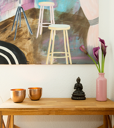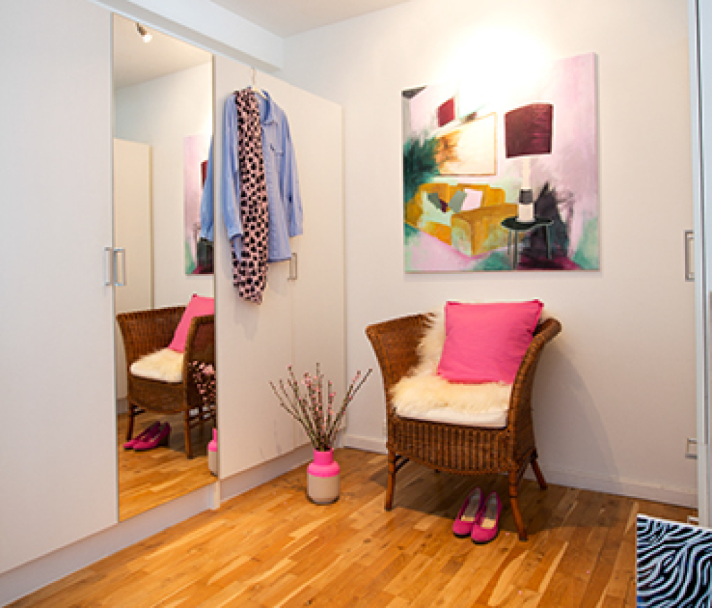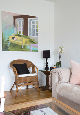 Jeg kommer ud og tager et par fotos af et rum i dit hjem og maler et billed ud fra det.
